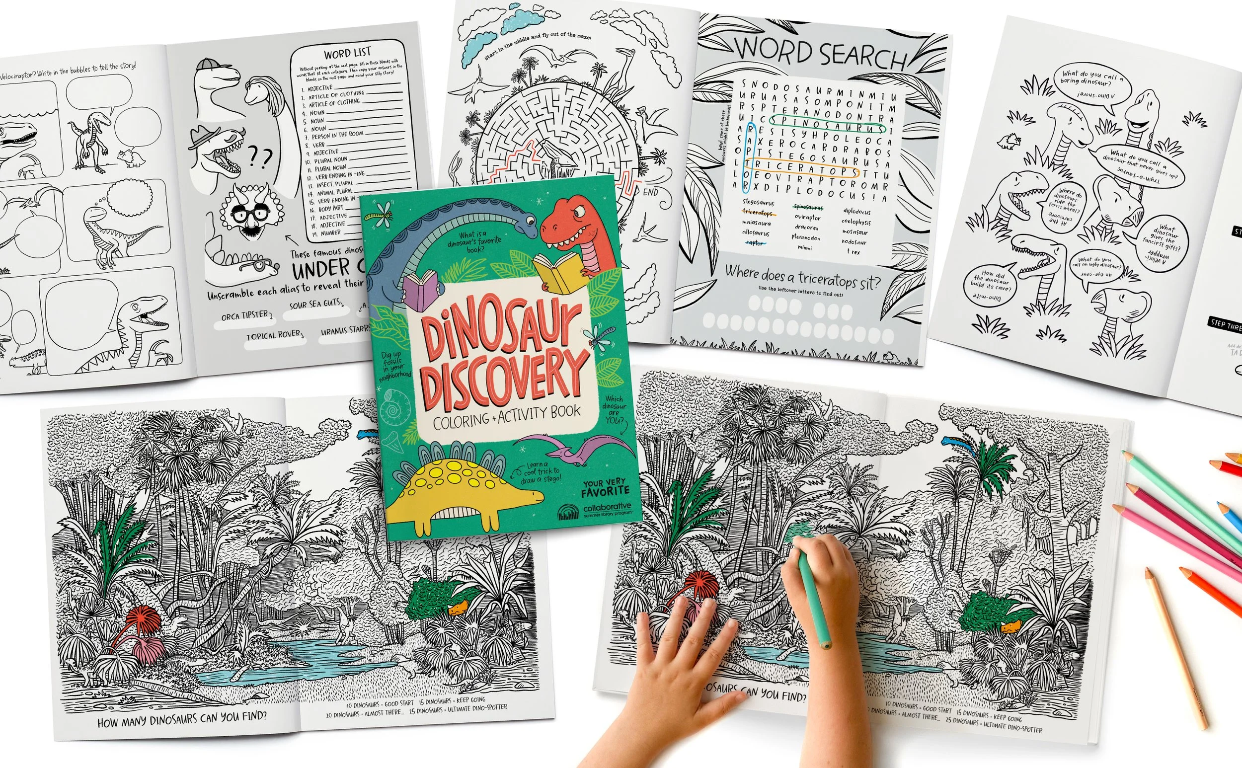 We met CSLP at the American Library Association conference in 2024, and knew we absolutely HAD to work together! They loved the custom coloring and activity book that we did for the American Fork Library, and loved our approach to fun and engaging activities. Their 2026 theme is Unearth a Story, and features dinosaurs, which WE LOVE. They asked us to create a set of dinosaur-themed products designed to engage kids, teens, and even adults in the joy of reading and learning. The materials we developed are available to libraries nationwide, putting our custom educational activity books into the hands of thousands of families next year!